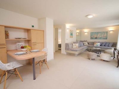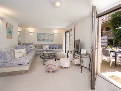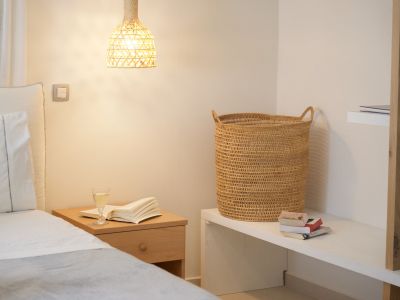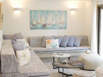 The stone-built sofas with their comfortable cushions and smart coffee tables have been designed to create a delightfully warm and cozy atmosphere.