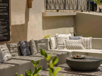 On the veranda you can find a dining table, perfect for six people, sun beds and an umbrella.